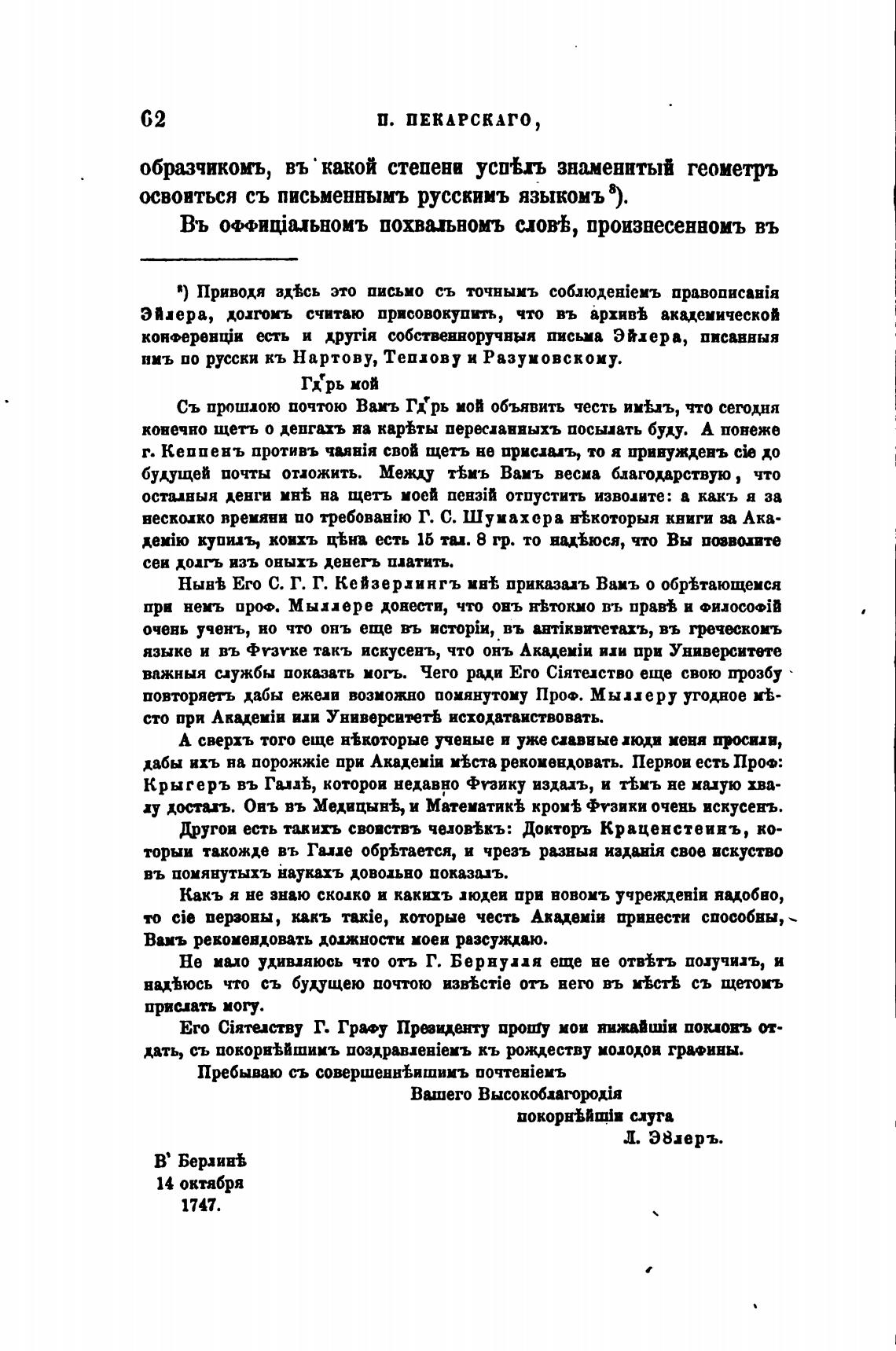 Эйлера, дотомъ считаю присовокупить, что въ архив% академической