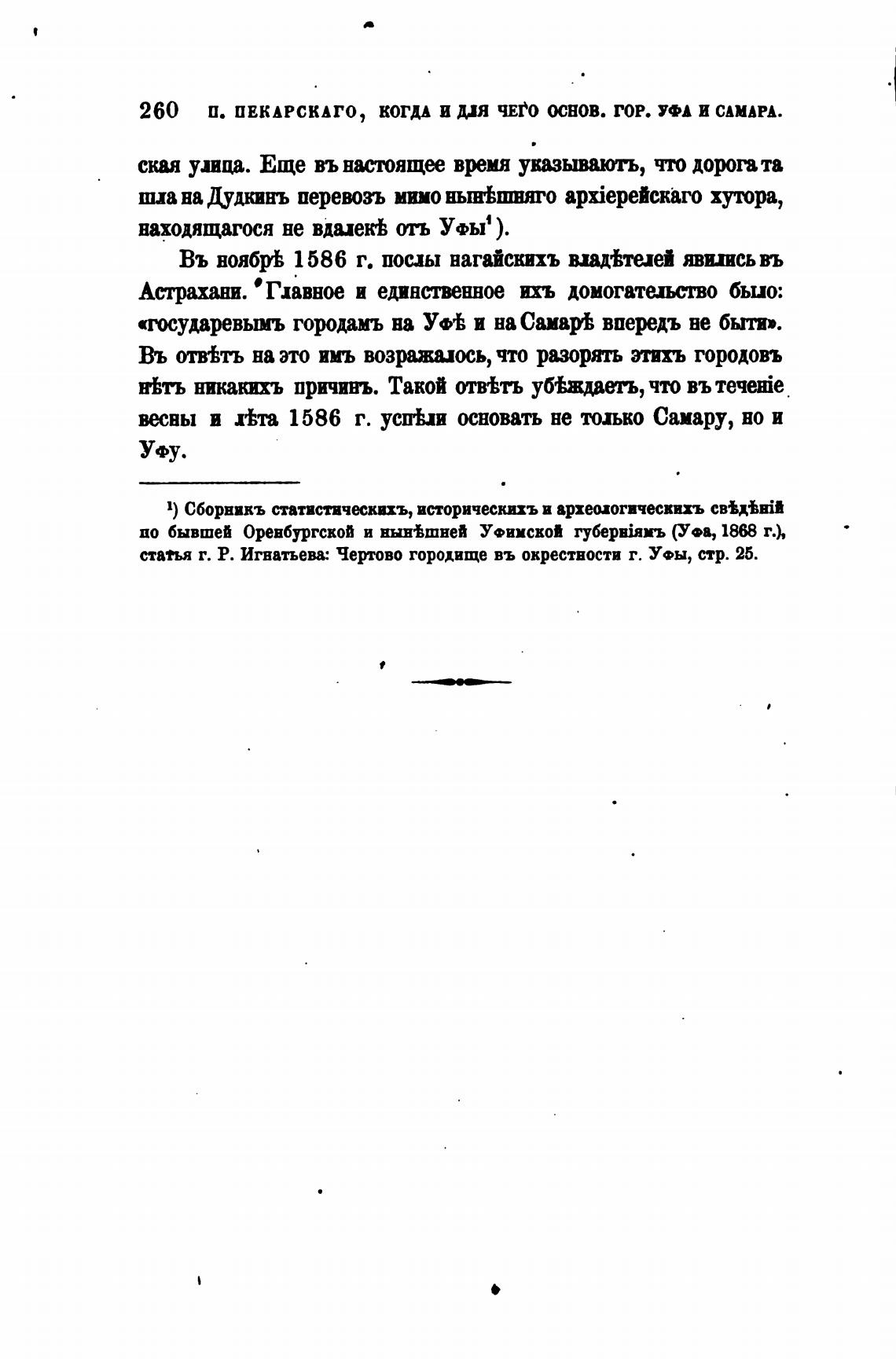 260 П. ПЕКАРСКАГО, КОГДА И ДЛЯ ЧЕРО ОСНОВ. гор. УФА И САМАРА.