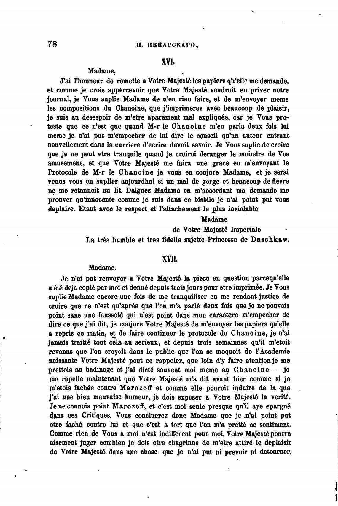 La trbs humble et tres fdelle sujette Princesse de Daschkaw.