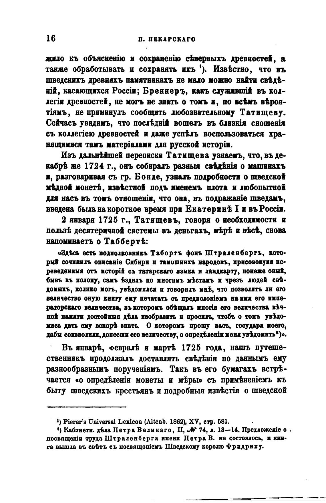 2 января 1725 г., Татищевъ, говоря о необходимости и