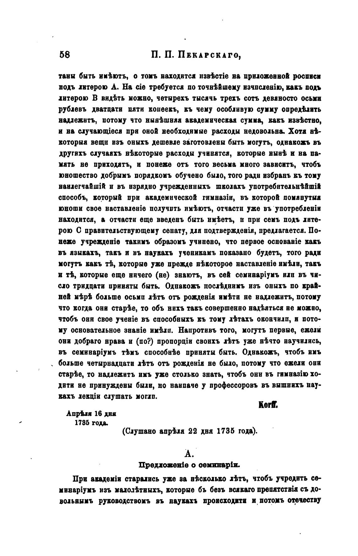 (Слушано anpba 22 хва 1735 года).