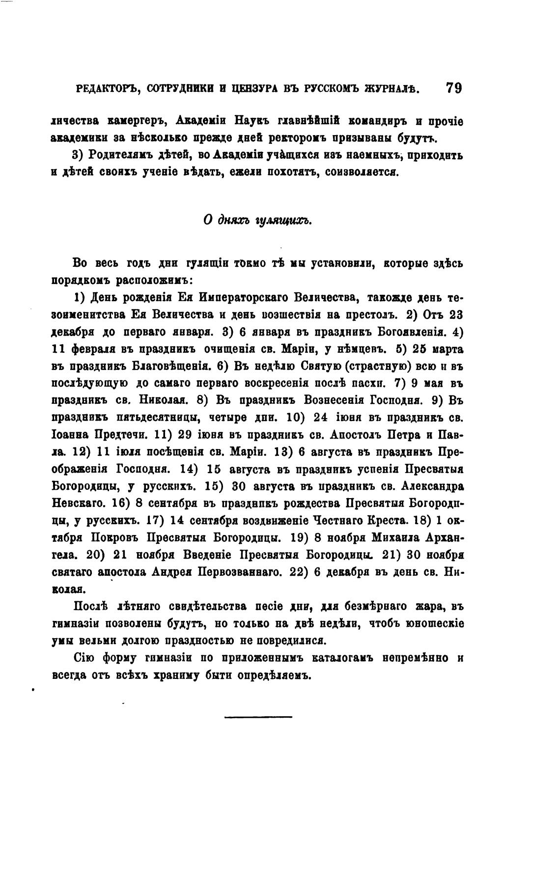 Во весь годъ дни гуляпји токмо ть мы установиди, которые зд±сь