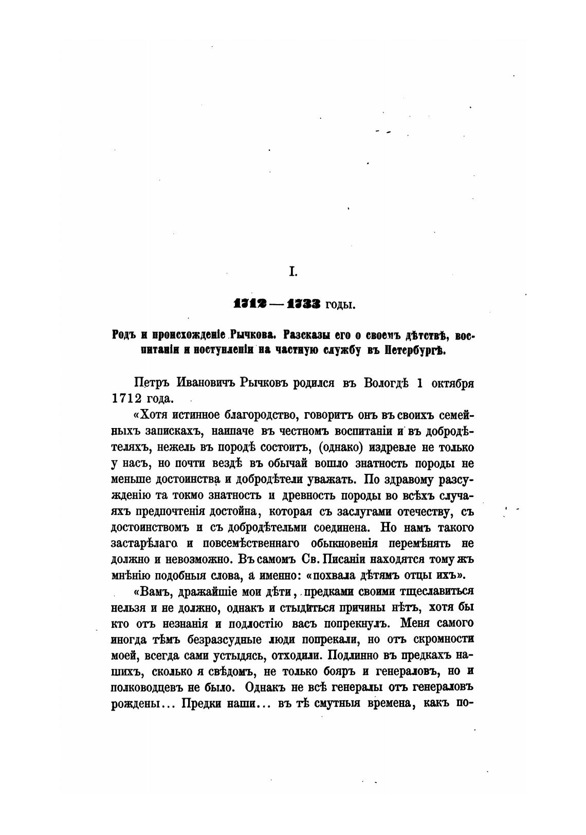 Петръ Ивановичъ Рычковъ родился въ Вологд•Ь октября
