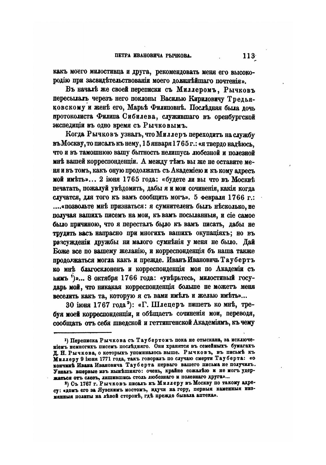 1) Переписка Рычкова съ Таубертомъ пока не отыскана, за исключе-