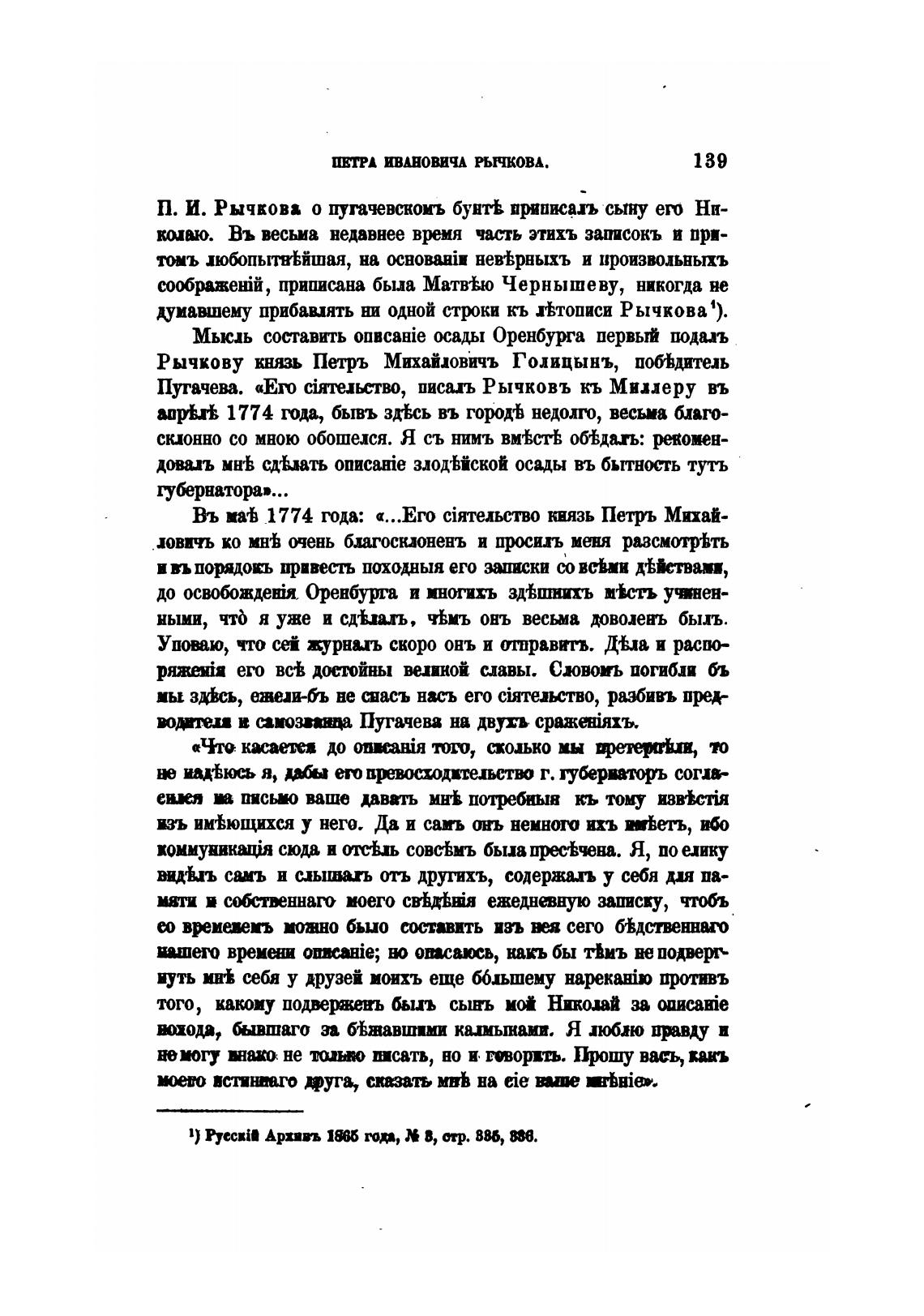П. И. Рычкова о пугачевскомъ бун“ щтжалъ сыну ero Ни-