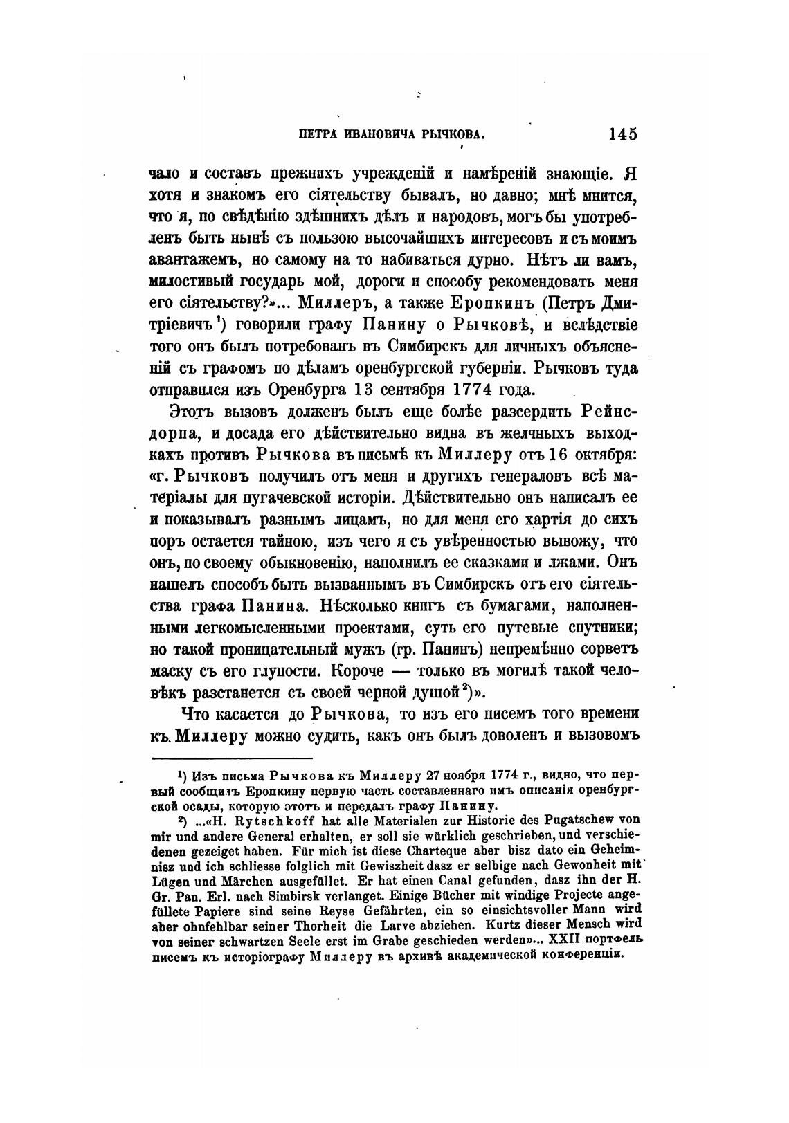 Что касается до Рычкова, то изъ его писемъ того времени