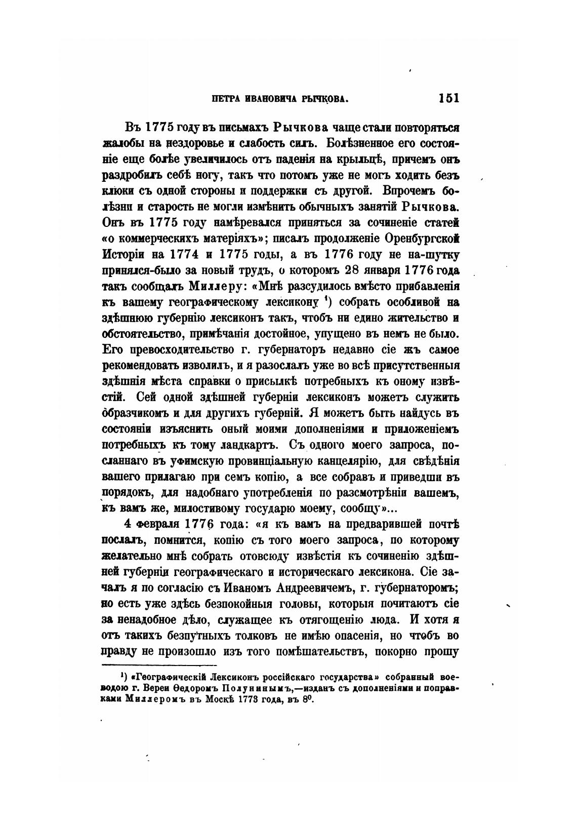Въ 1775 году въ письмахъ Рычкова чаще стали повторяться