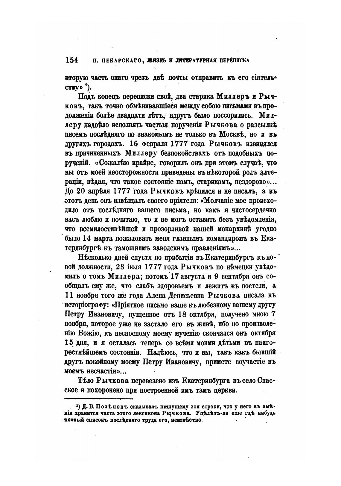 До 20 ацрья 1777 Года Рычковъ кр±пился и не писалъ, а въ