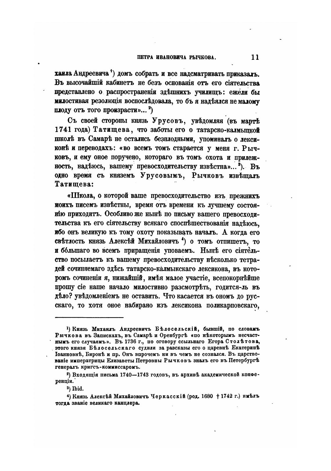 одно время съ княземъ Урусовышь, Рычковъ извВщиъ