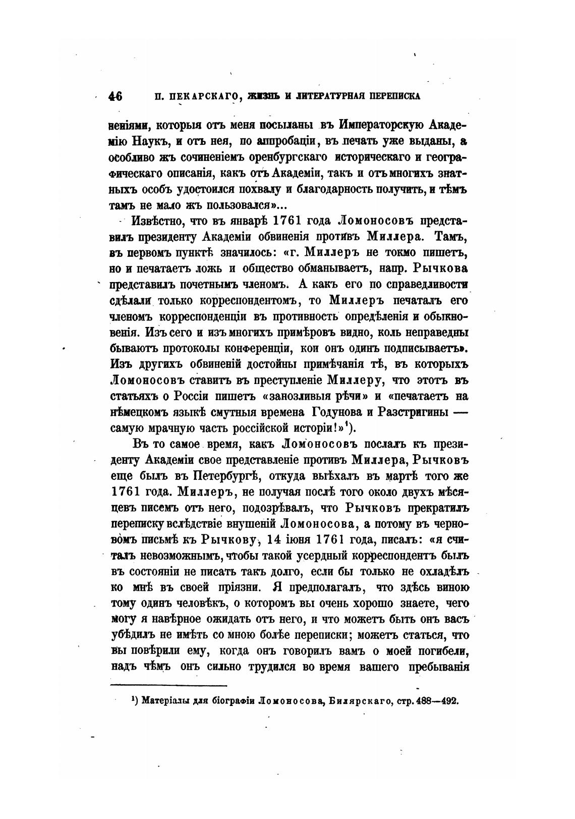 вонь письм'В кь Рычкову, 14 1761 года, писалъ: «я счи-