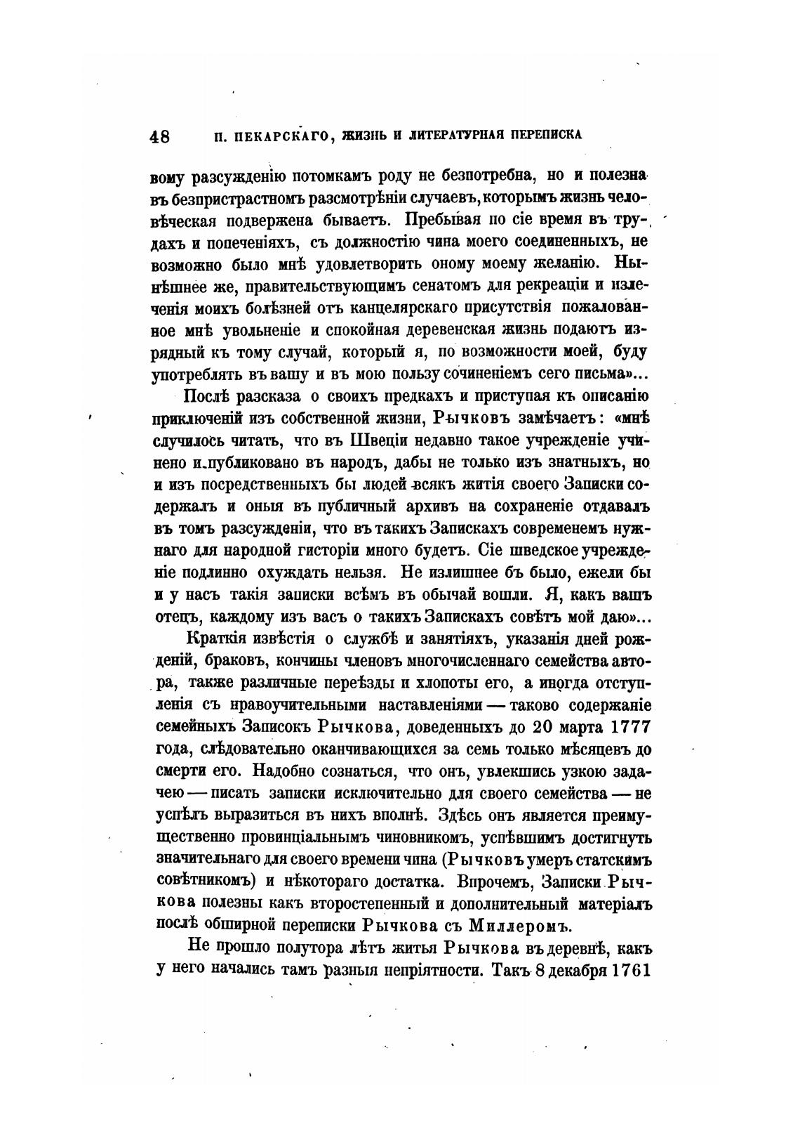 изъ собственной жизни, Рычковъ замеЬчаетъ: «М