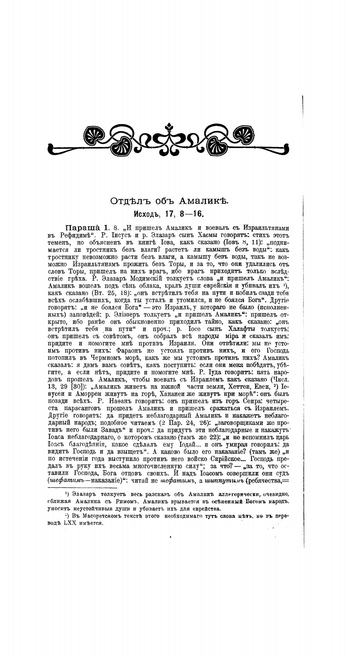 ныхъ) запомдей•, р. толкуетъ „и пришиъ Амаликъ“: пришель от-