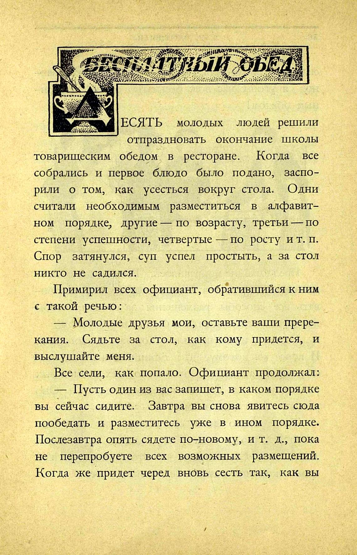 Все сели, как попало. Официант продолжал: