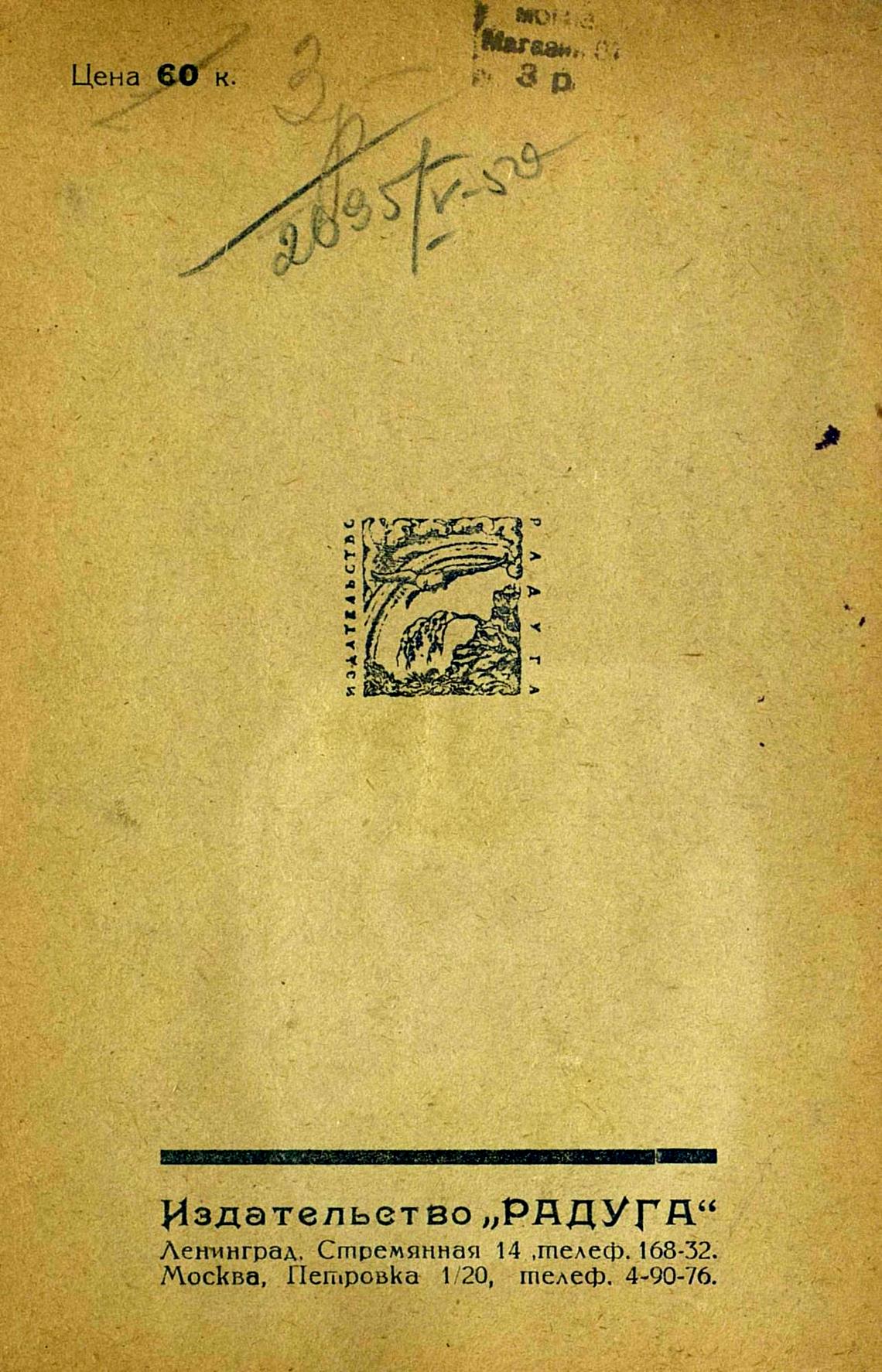 Ленмнград, Стремянная 14 ,телеф. 168-32.
