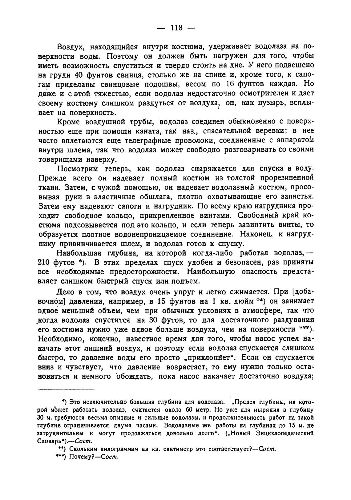качать этот лишний воздух, и поэтому если водолаз спускается слишком