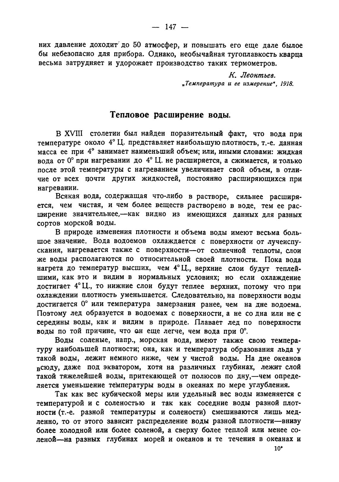 „Температура и ее измерение“, 1918.