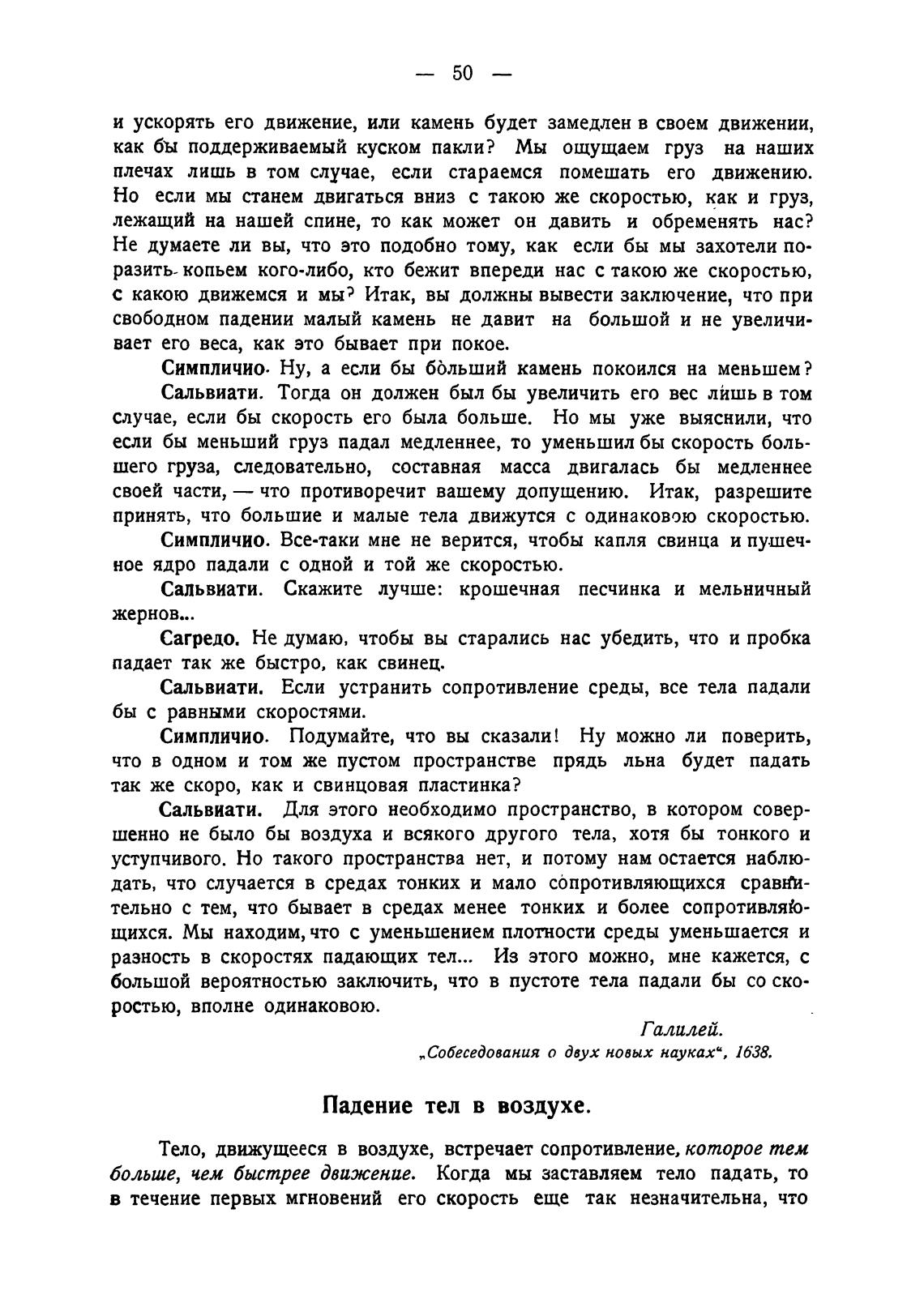 Сальвиати. Если устранить сопротивление среды, все тела падали