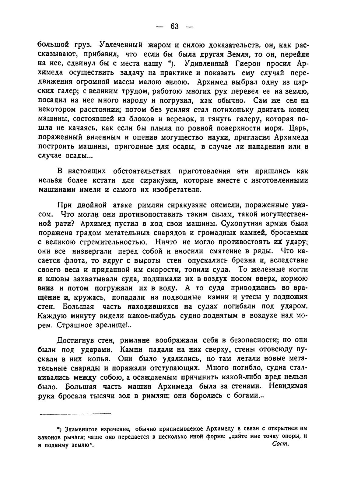на нее, сдвинул бы с места нашу *). Удивленный Гиерон просил Ар-