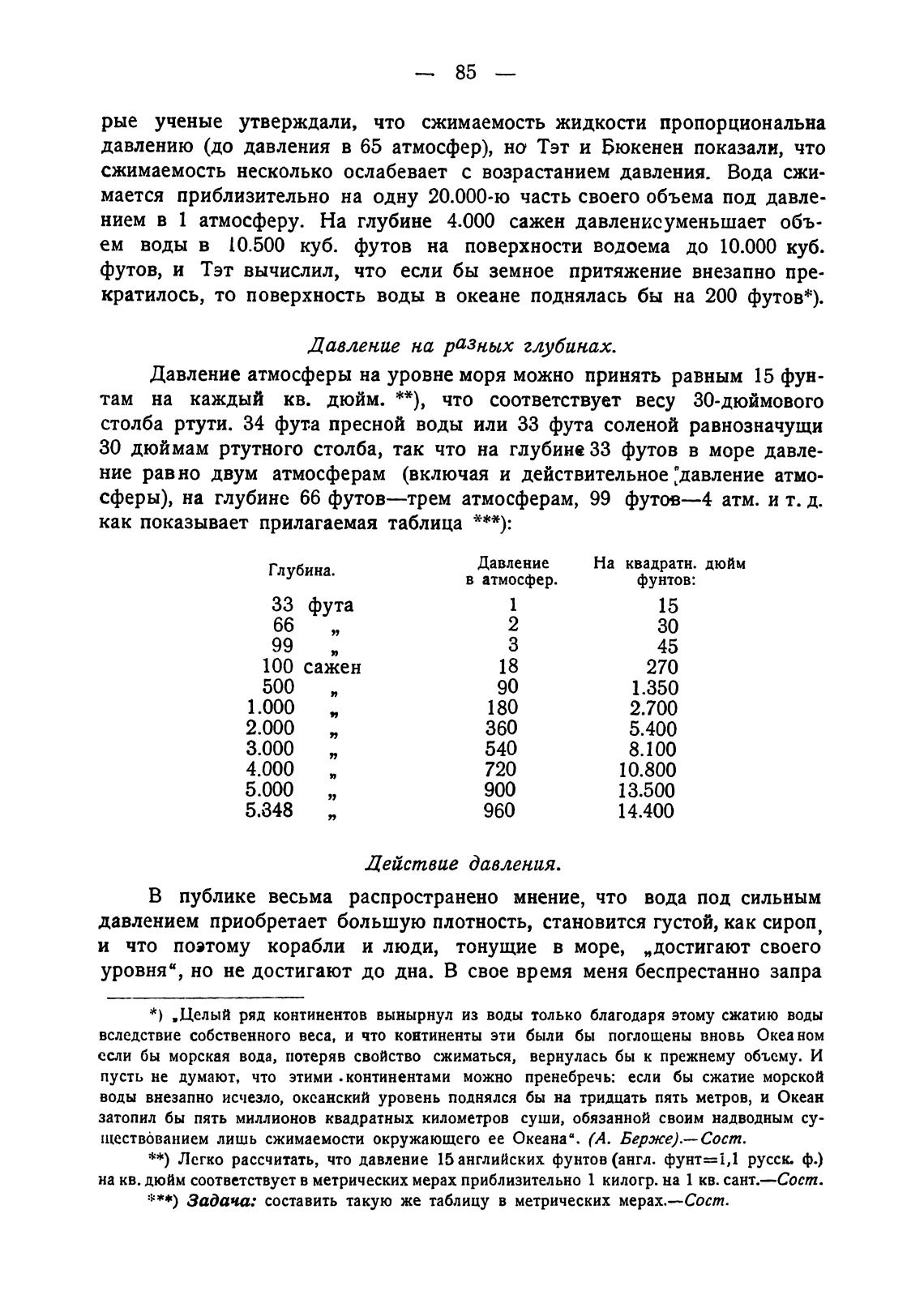 нием в 1 атмосферу. На глубине 4.000 сажен давленисуменьшает объ-
