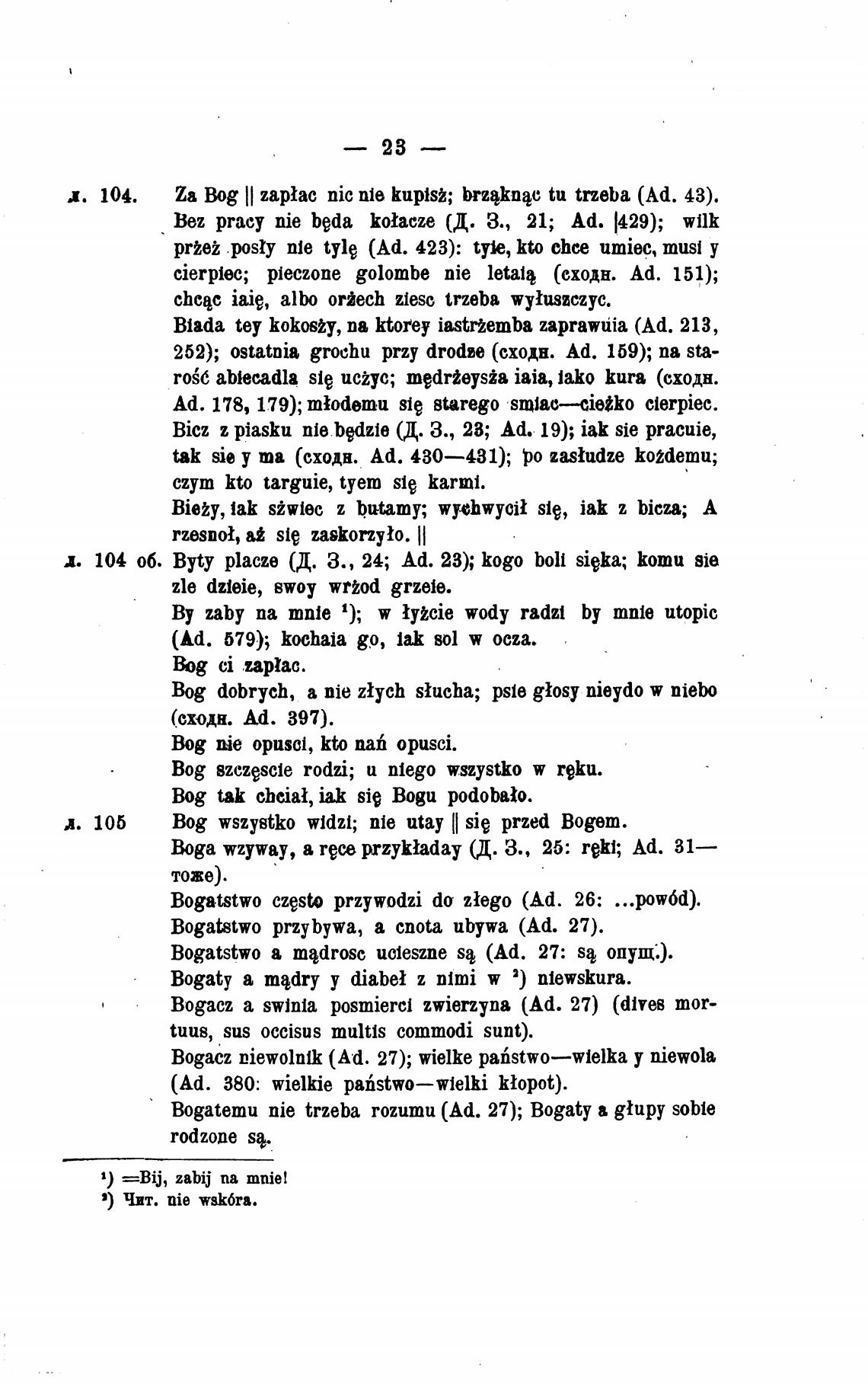 х 104 об. Byty placze (Д. 3., 24; Ad. 23); Кодо boli sieka; Коти Sie