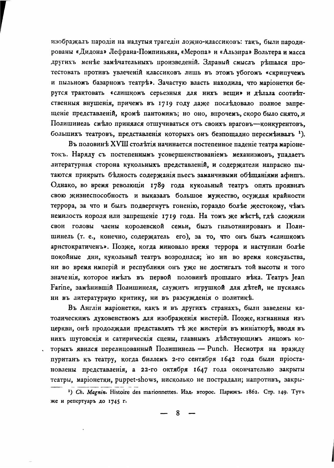 1) СЬ. Magnim. Histoire des marionnettes. Изд. Парижъ. 1862. Стр. 149. Тутъ