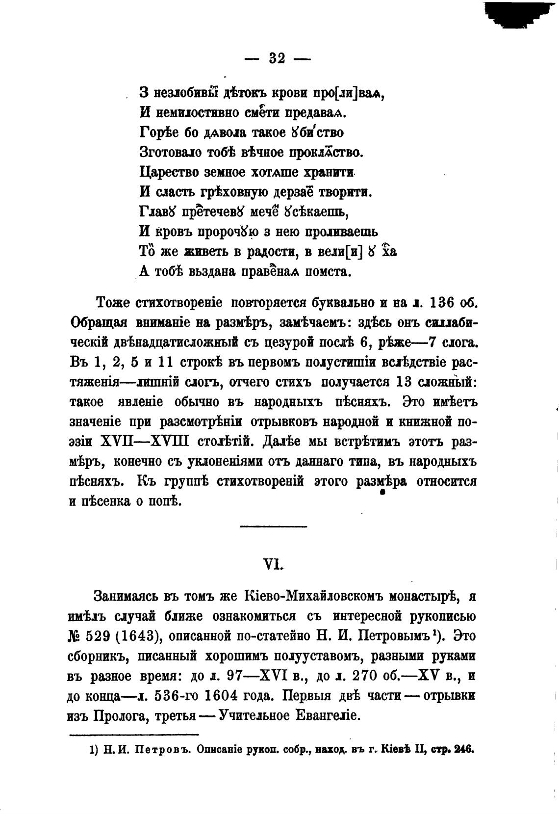1) Н. И. Петровъ. рукоп. собр., ваход. въ г. Юев% Ц с. 24$.