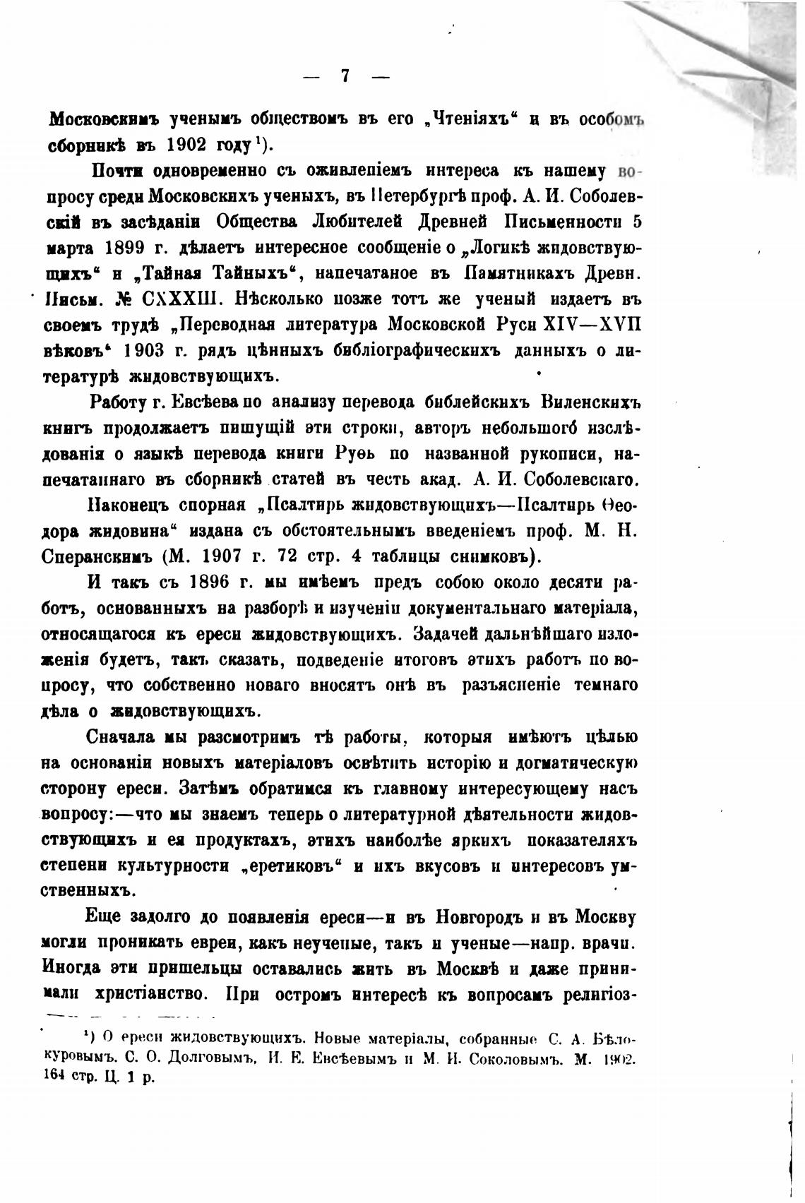 1) О ереси жидовствующихъ. Новые матерјалы, собранные С. А. Б•Ьло-