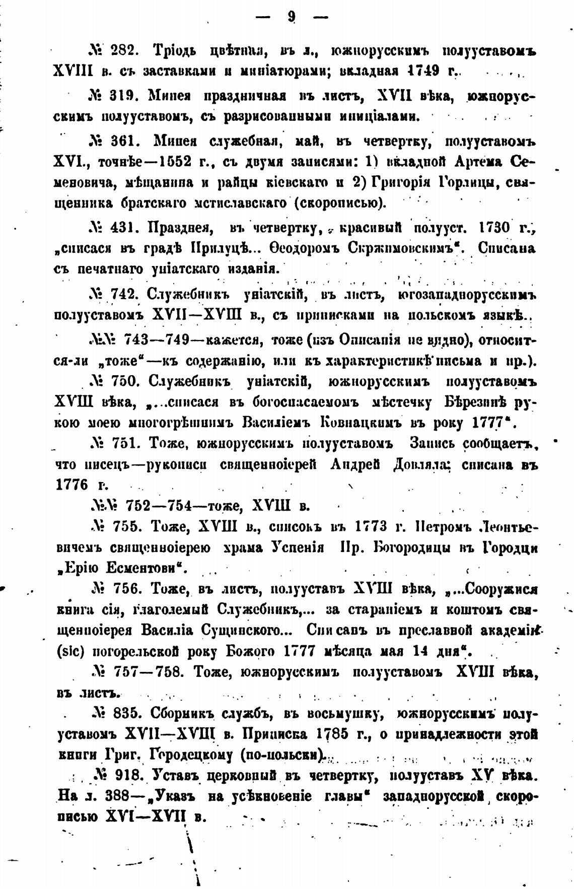 751. Тоже, южнорусскихъ полууставомъ Запись дообщаетъ,