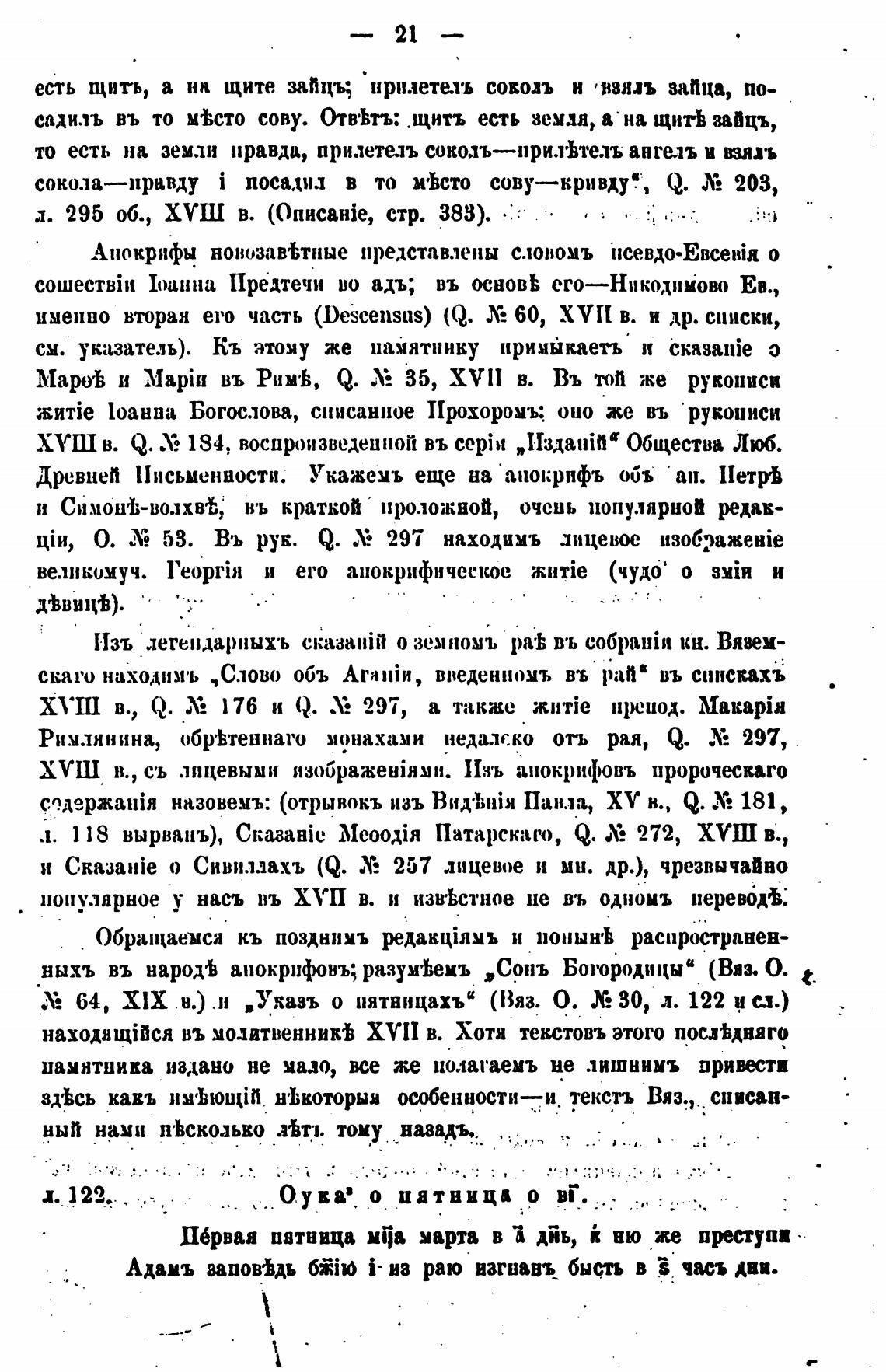 64, МХ в.) .н в Уяазъ о пятницахъД (Вяз. О. 30, л. 122 и сл.)
