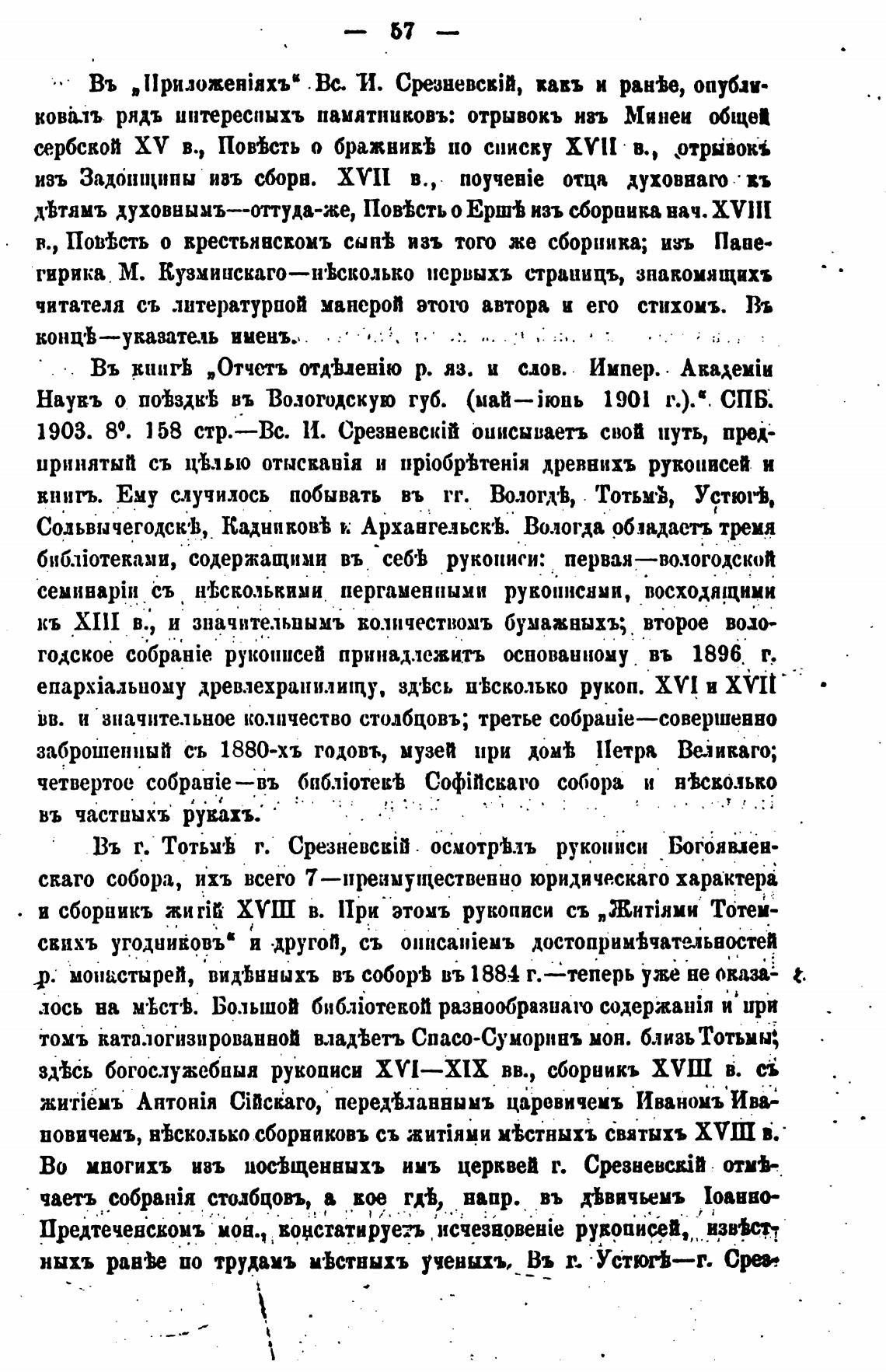 внигъ. Ему случилось побывать въ гг. Вологд•Ь, Тотьм•Ь, Устюњ,