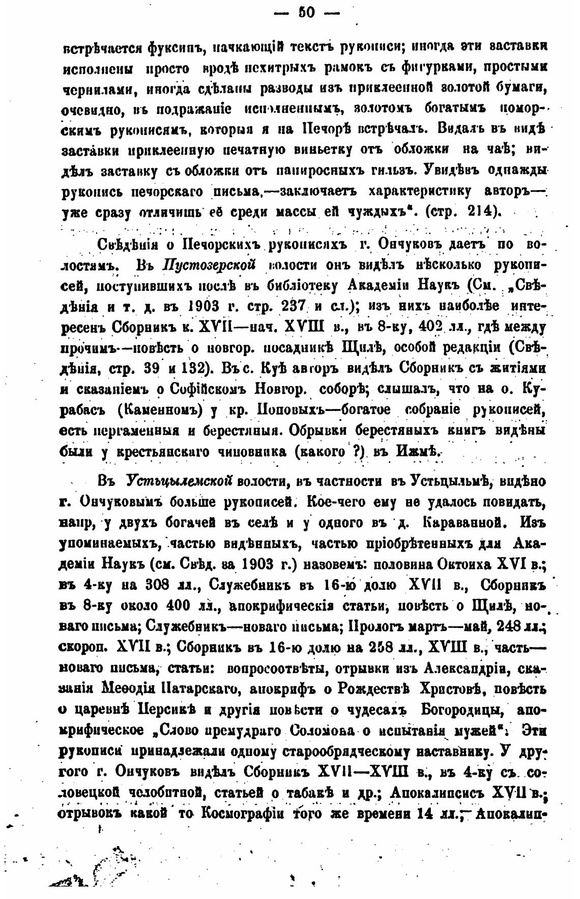 CB•hxbuiH о 11ечорски.хъ руконисяхъ 1'. Оачуковъ даеть по во-