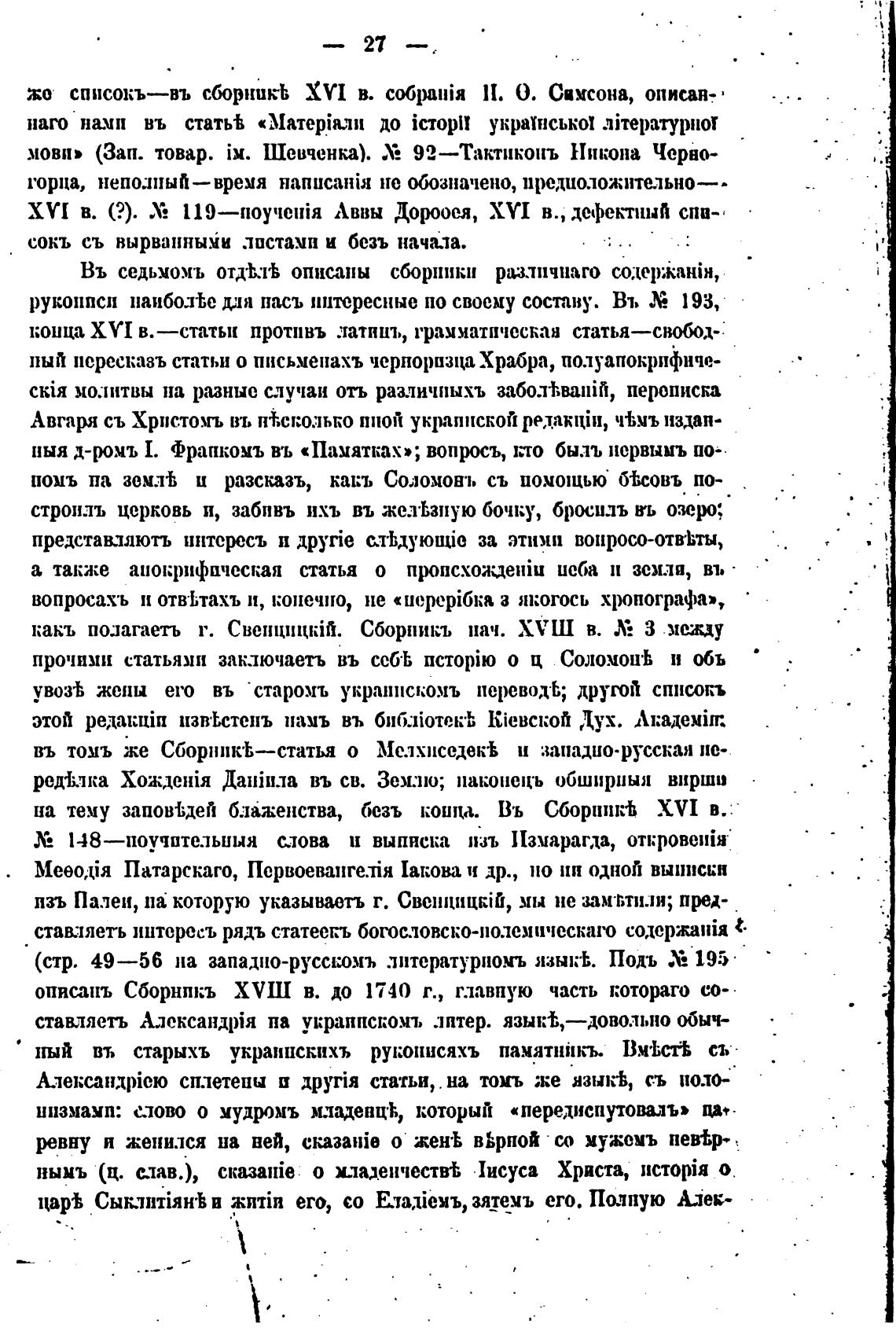 ннй въ старыхъ украинскихъ рукописяхъ памятникљ. съ