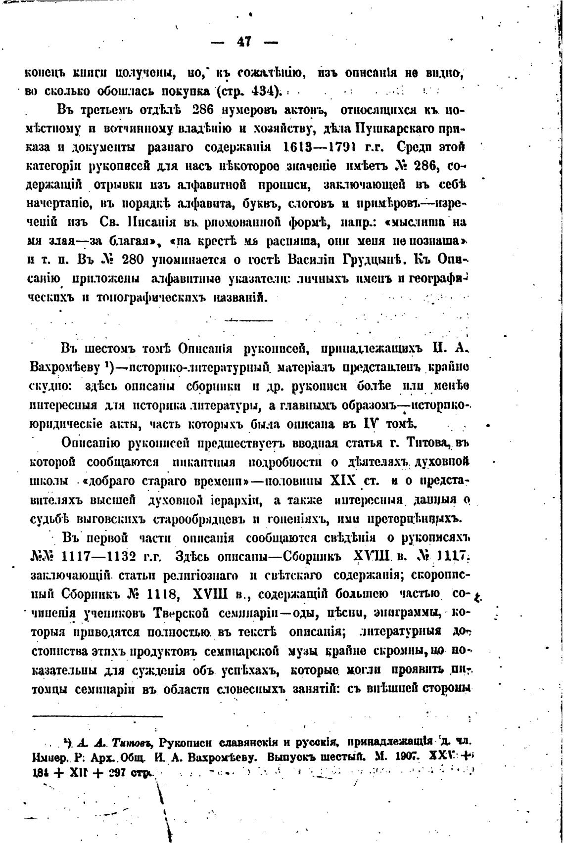 Въ шестомъ том•Ь Описа:йя рукописей, иринцтежащихъ ц. А.