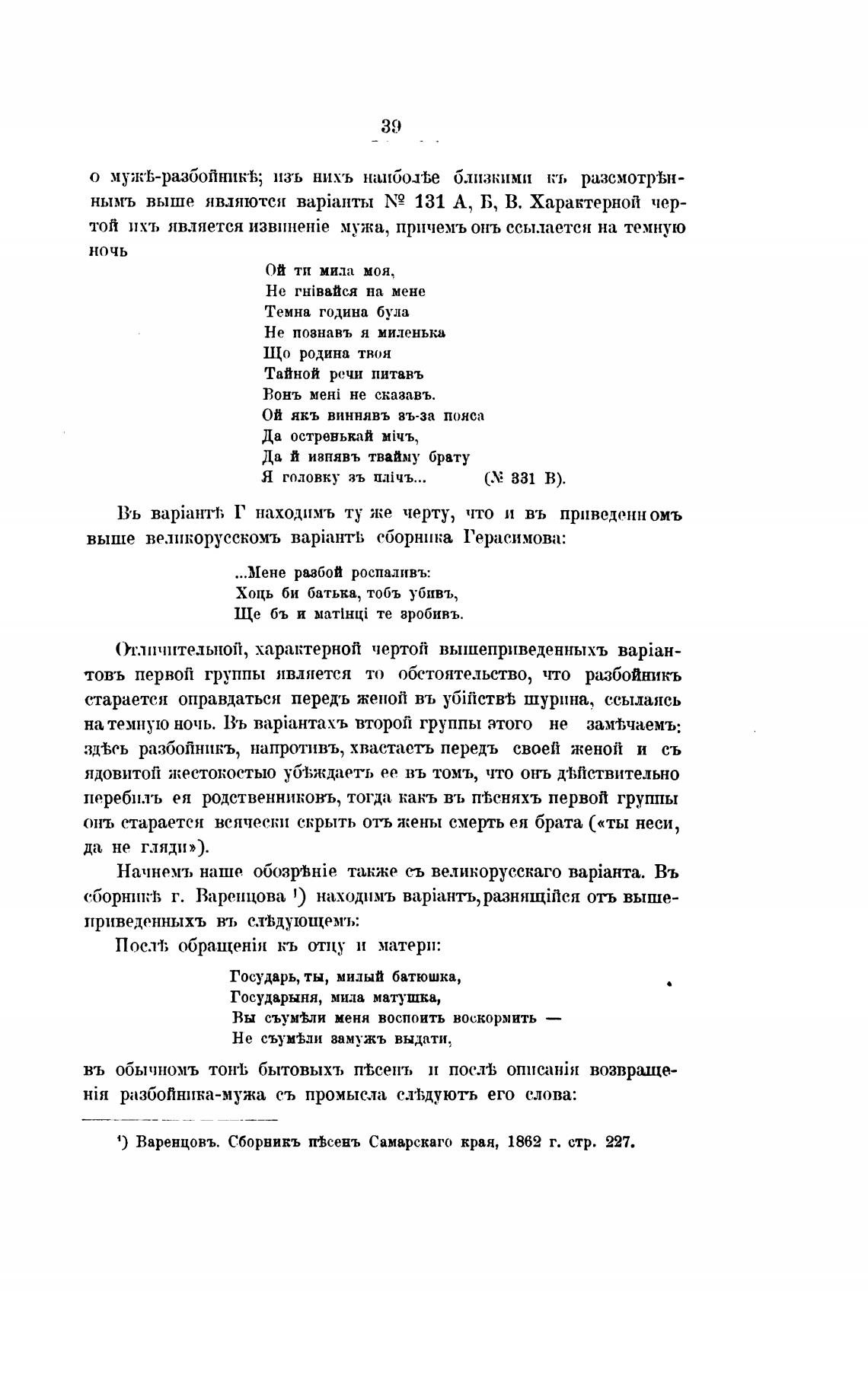 1) Варенцовъ. Сборникъ птсенъ Самарскаго кран, 1862 г. стр. 227.