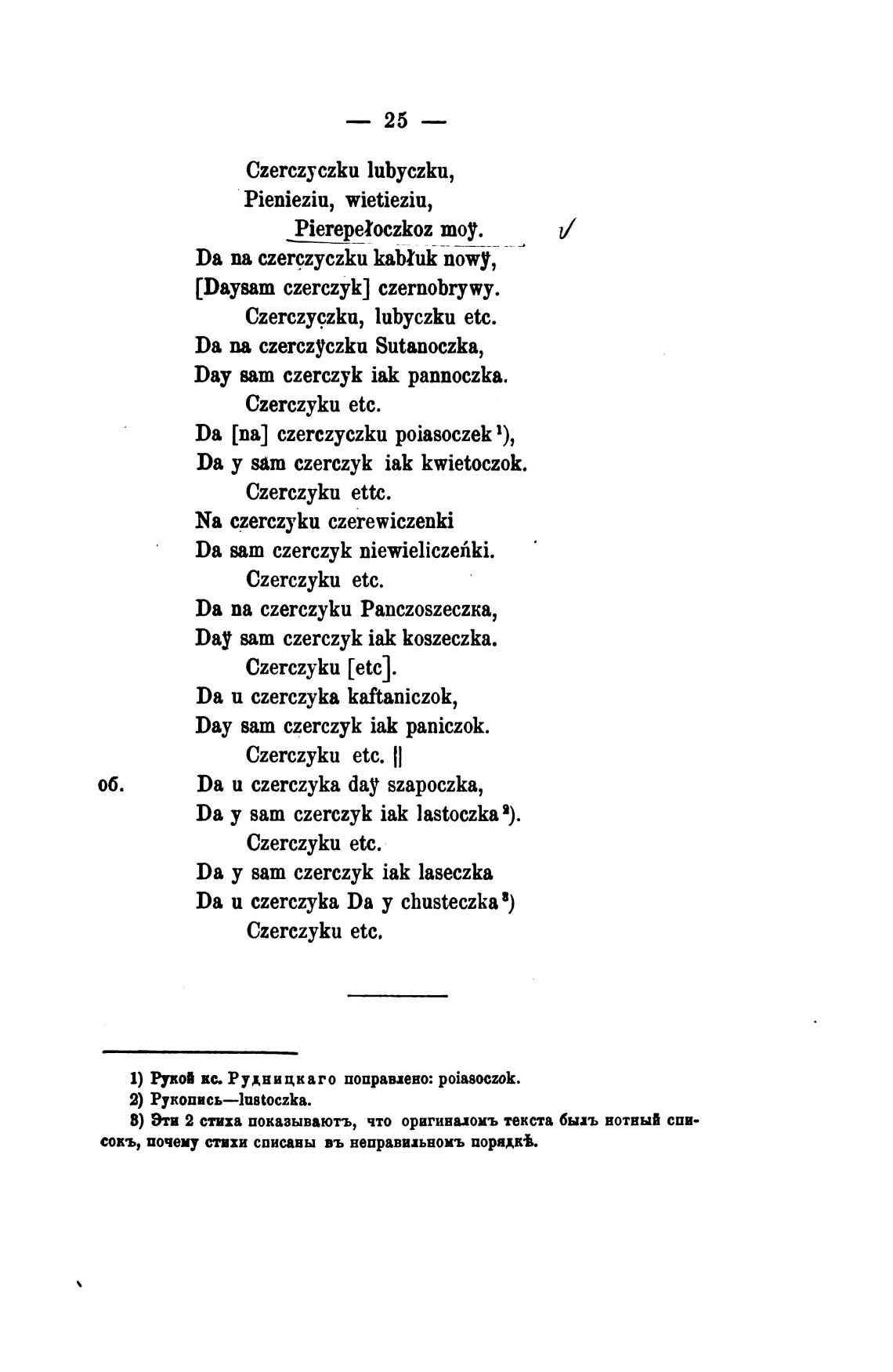 Da [па] czerczyczku poiasoczek 1),