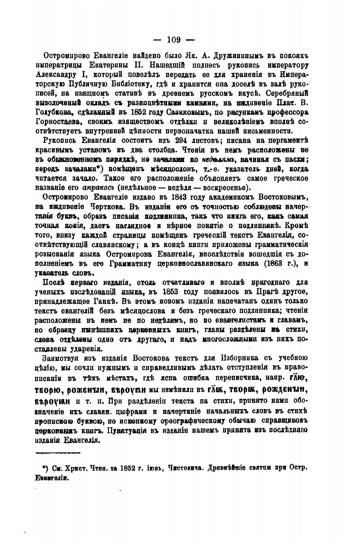 Заимствуя изъ Востокова тевстъ для Изборника съ учебною