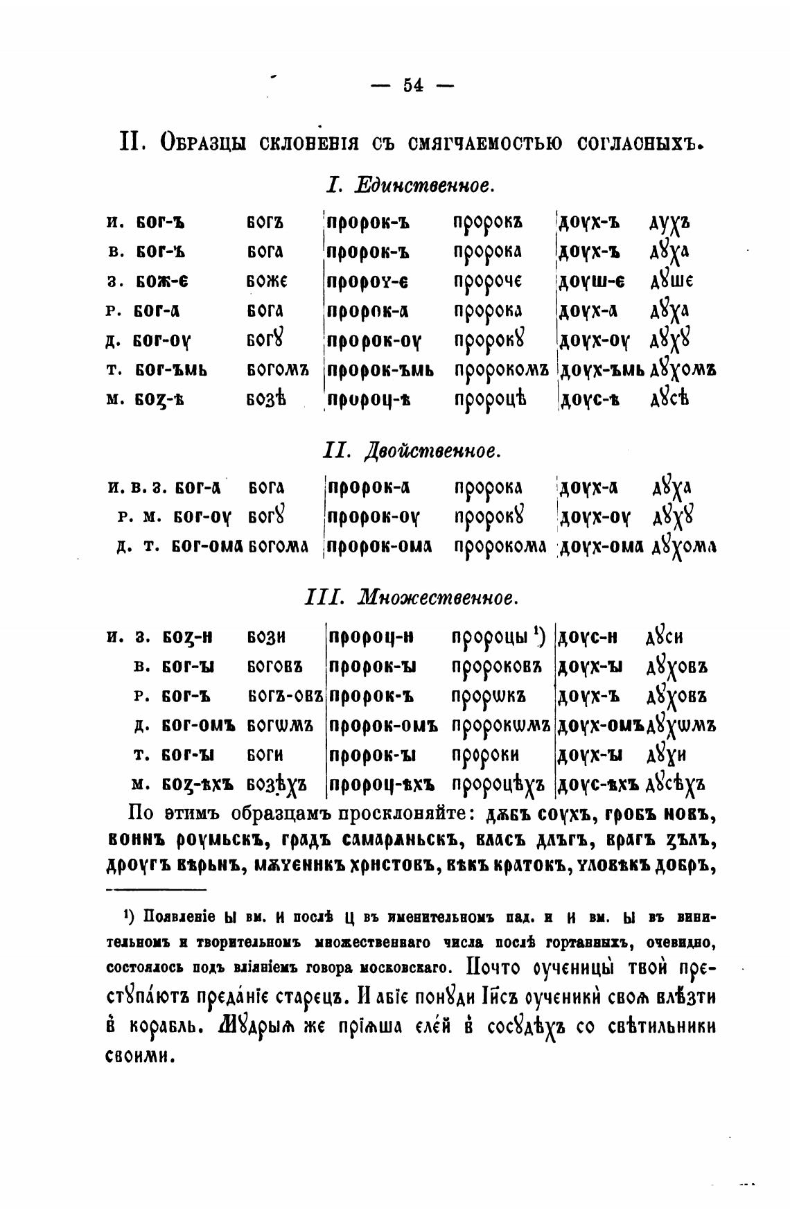 II. ОБРАЗЦЫ СКЛОНЕНИ СЪ СМЯГЧАЕМОСТЬЮ СОГЛАСНЫХЪ.