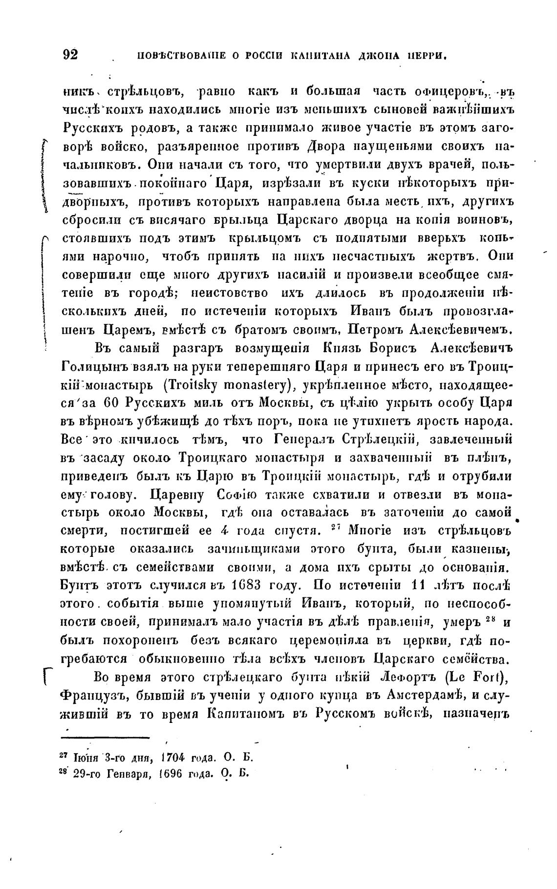Во время этого стрьецкаго бунта Лец»ортъ (Le Fort),