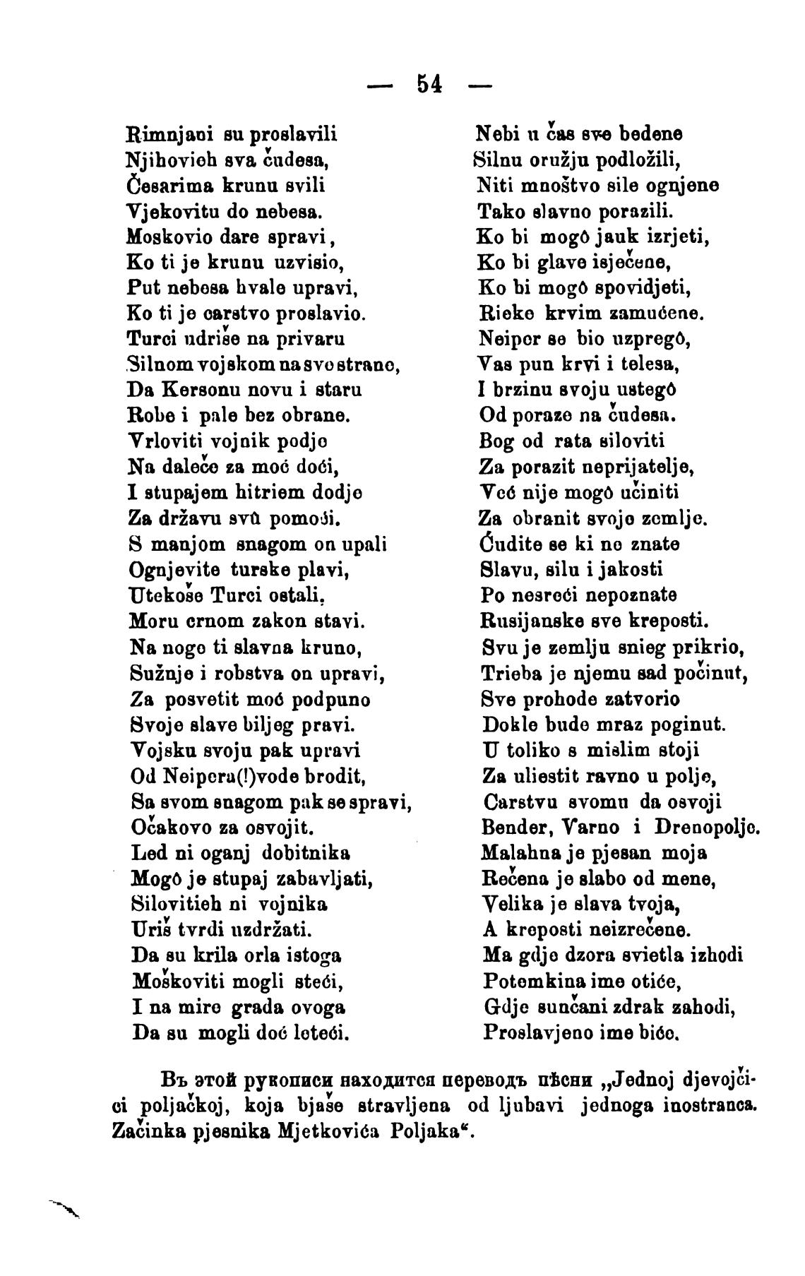 Въ этой рукописи находится переводъ пЈсни „Jednoj djevojci•