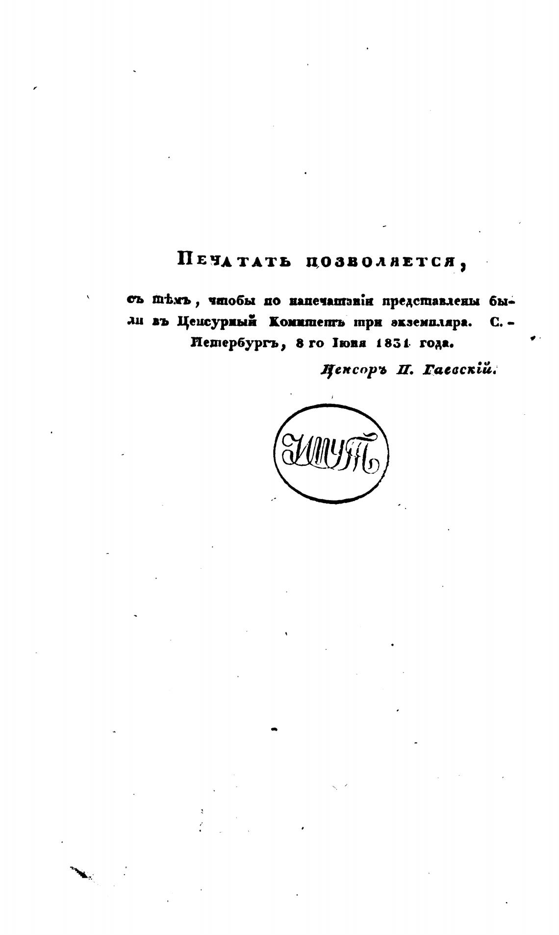 Петербургь, 8 го Иова 1831. года.