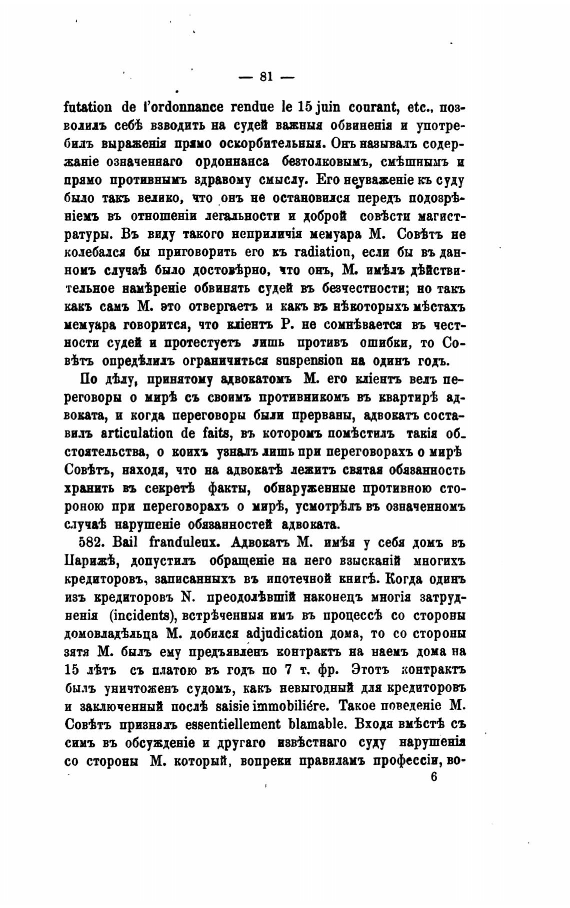 582. Bail franduleux. Адвокать М. им±я у себя домъ въ