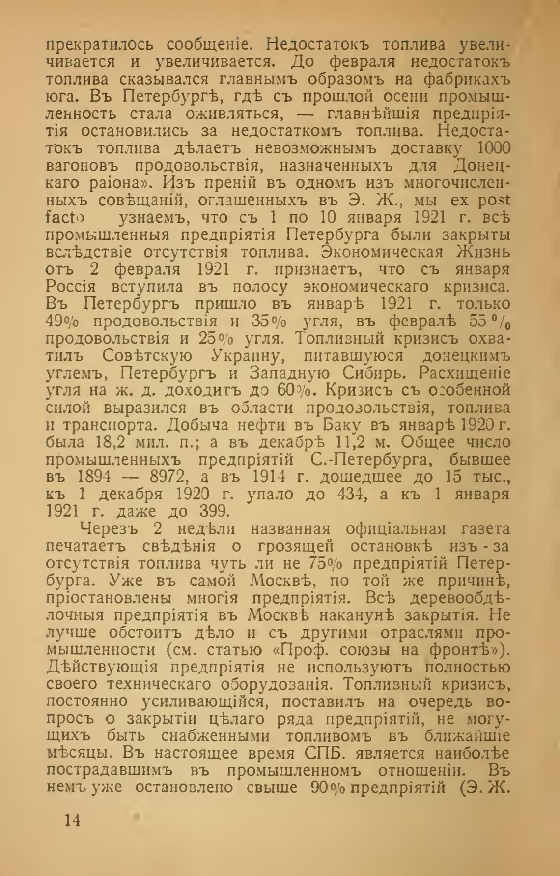 Въ Петербурљ пришло въ январ% 1921 г. только