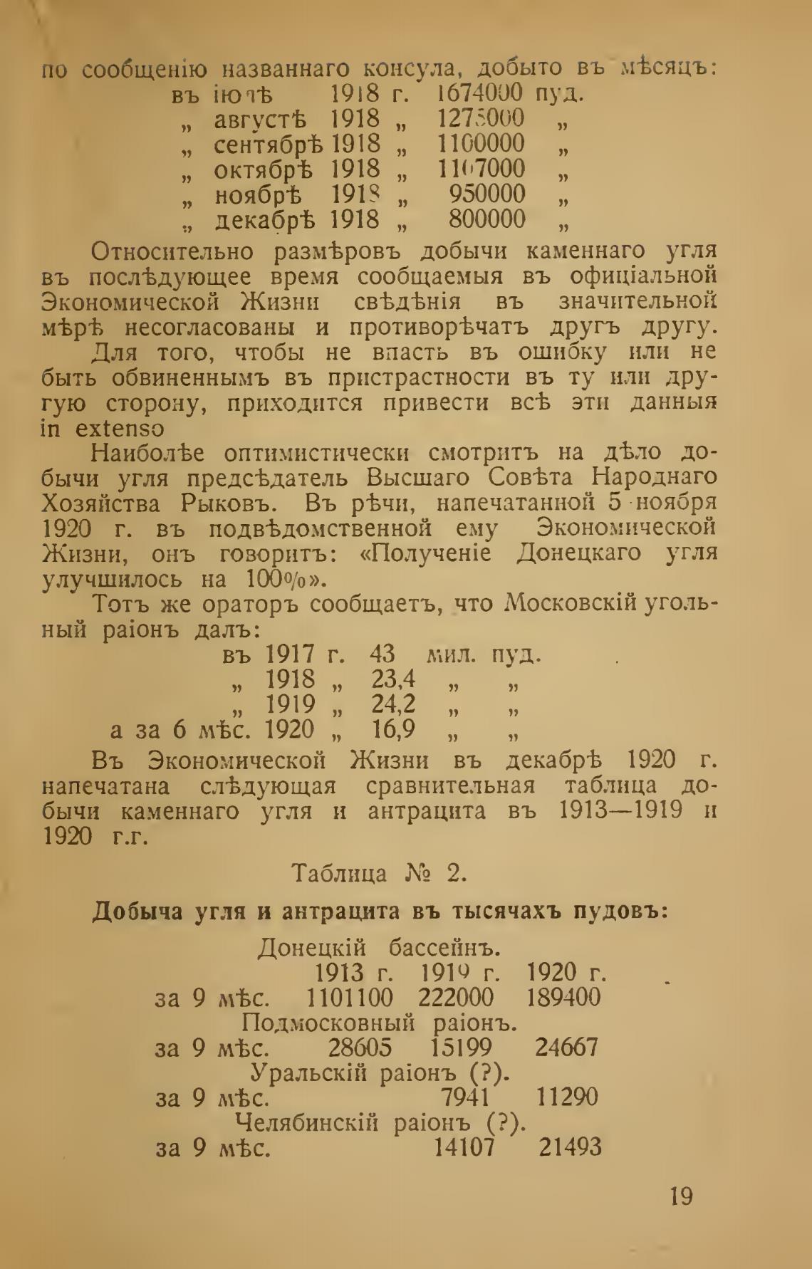 бычи каменнаго угля и антрацита въ 1913—1919 и