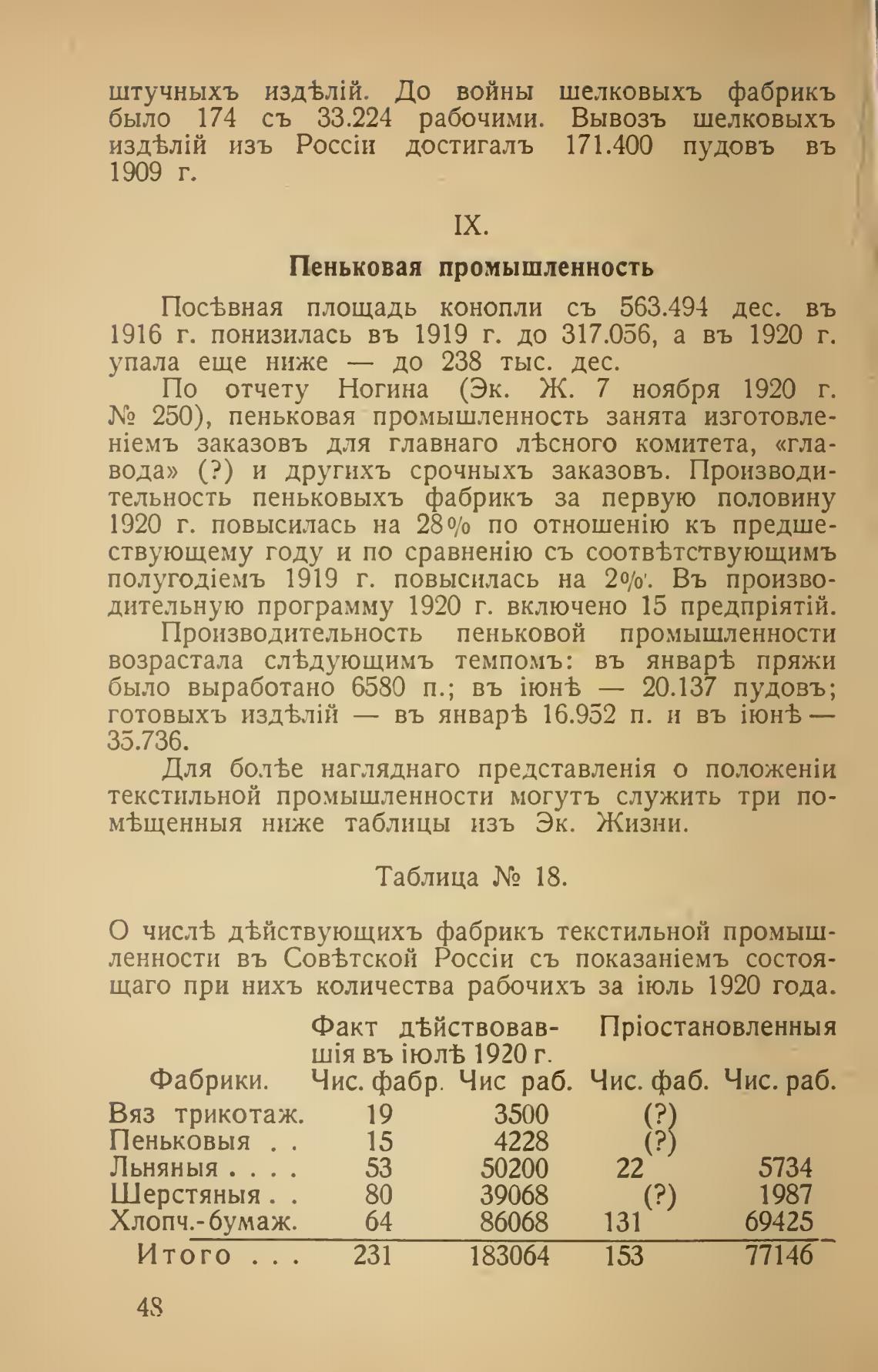 По отчету Ногина (Эк. Ж. 7 ноября 1920 г.