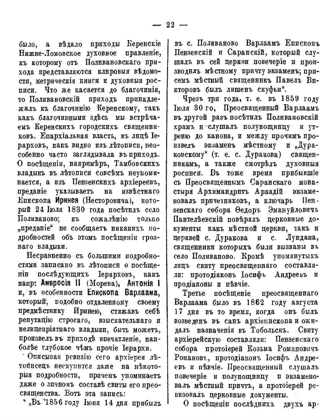 въ с. Поливаново Варлаамъ Епископъ