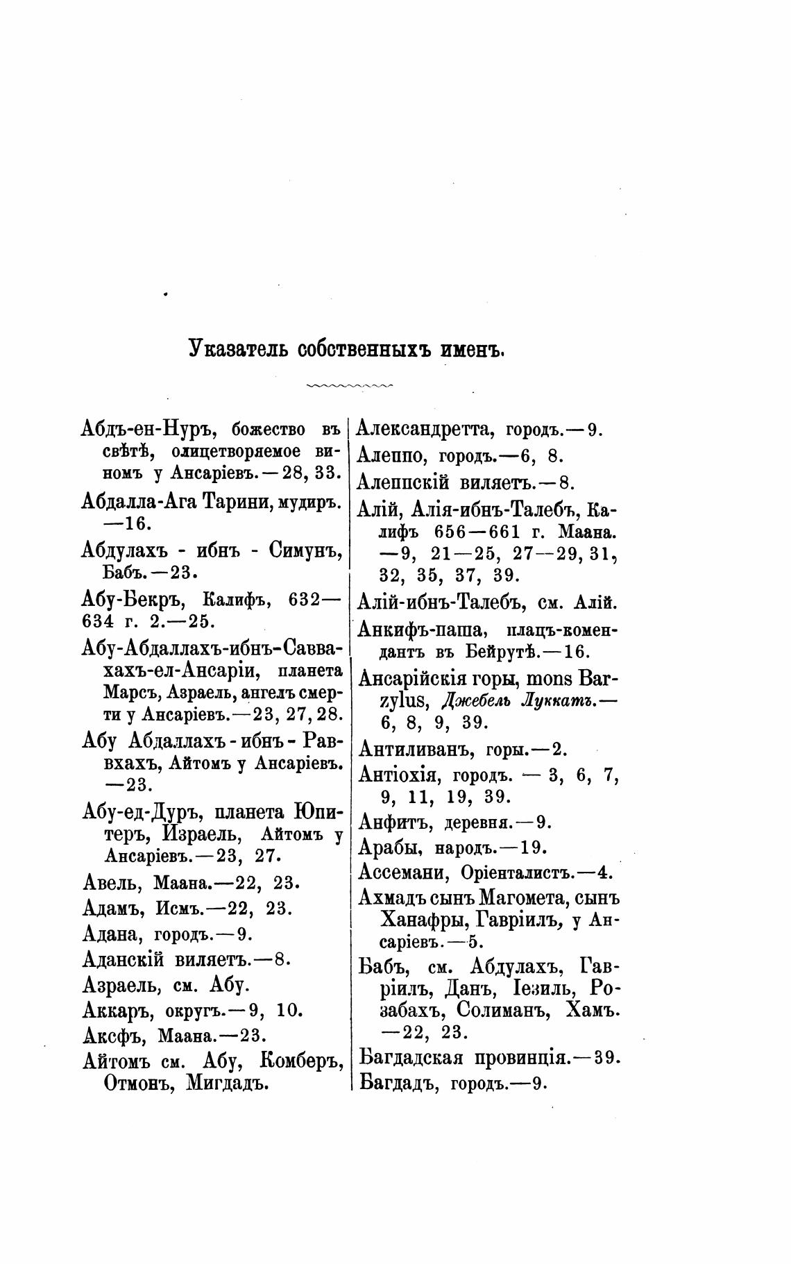 Указатель собственныхъ именъ.