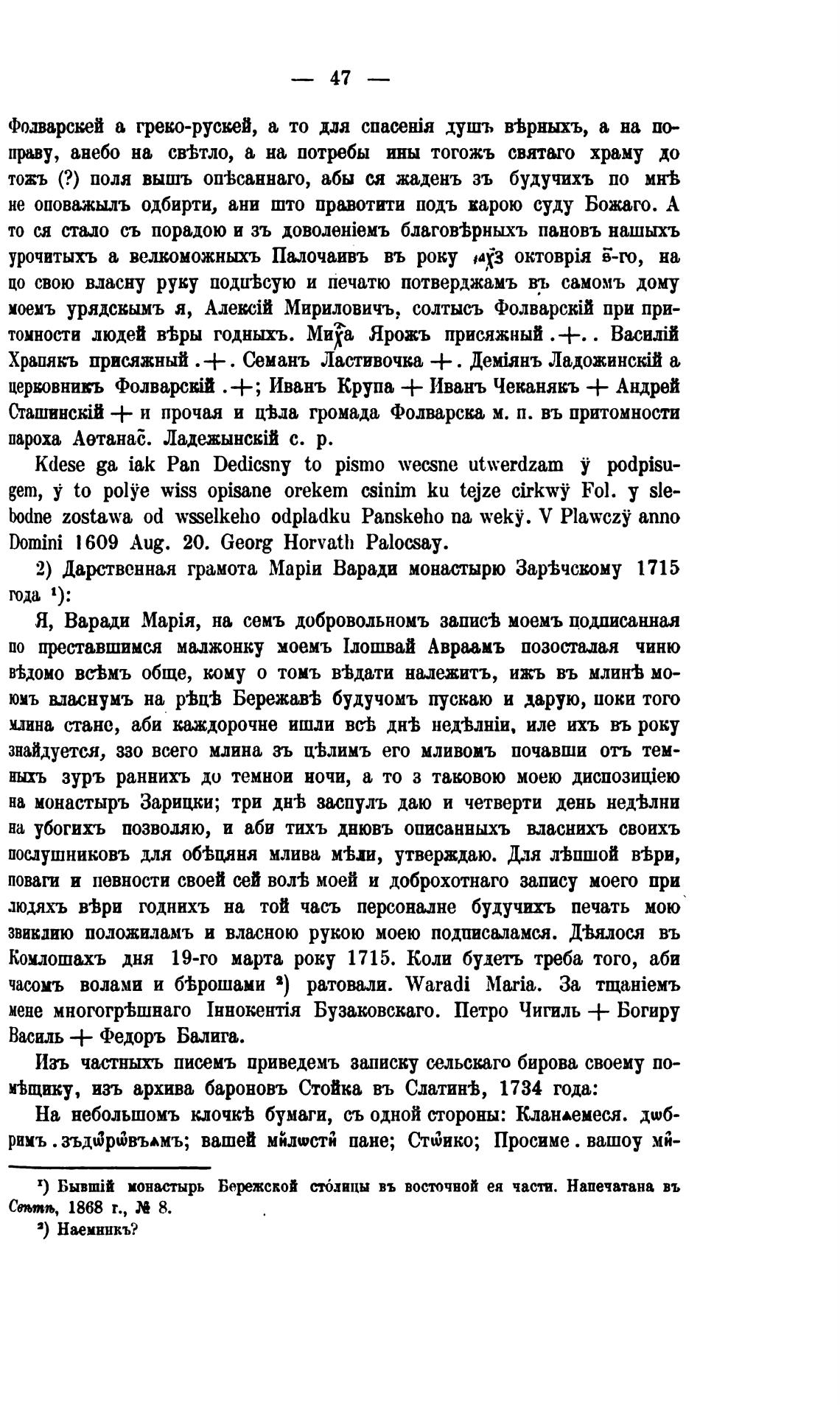 2) Дарственная грамота Варади монастырю Зар±чскому 1715