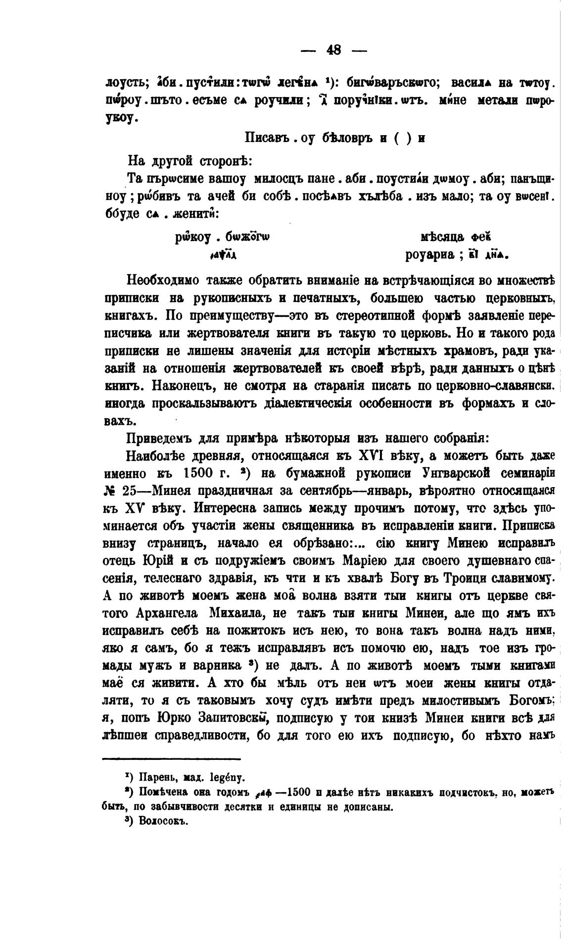 именно кь 1500 г. 3) на бумажной рукописи Унгварской семин$и