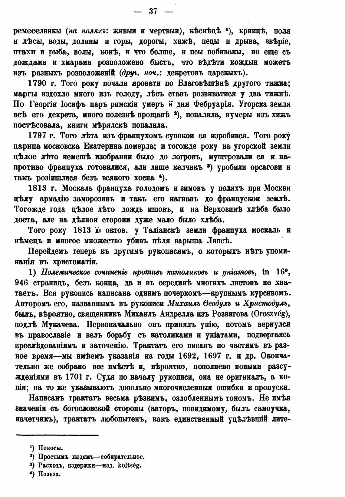Тогожде года ц%лое л•Ьто дождь ишовъ, и на Верховин•Ь хл%ба было