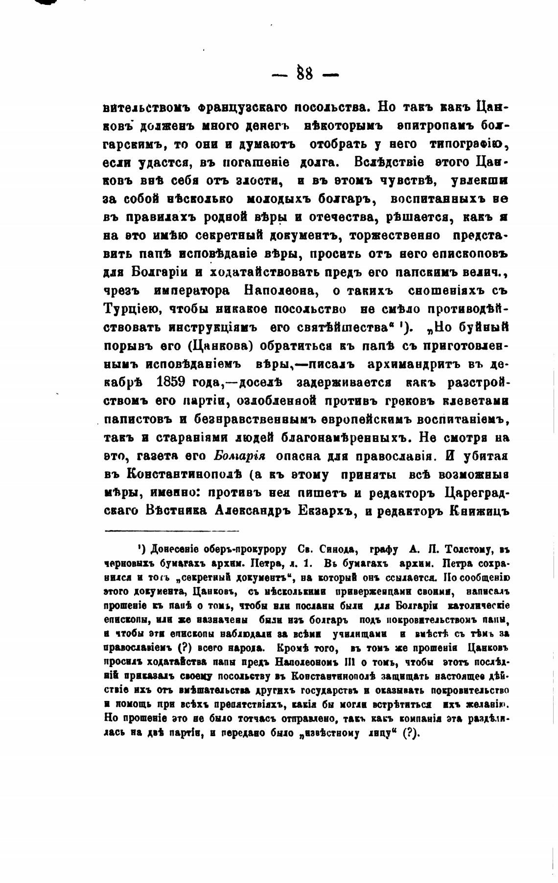 порывъ его (Цанвова) обратитьсн въ папв съ приготовлен-